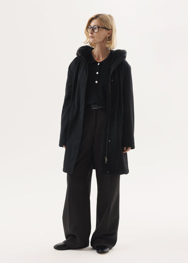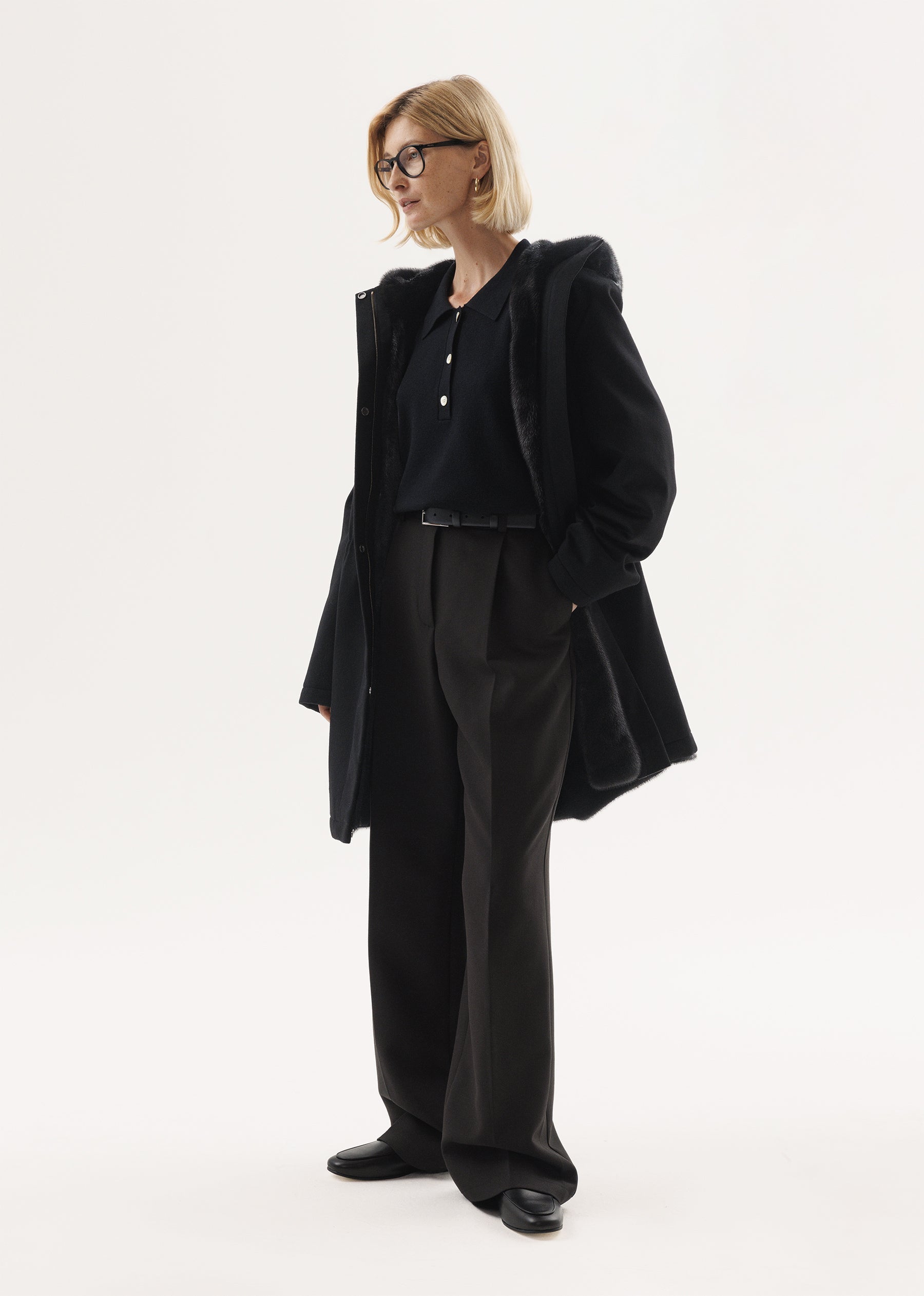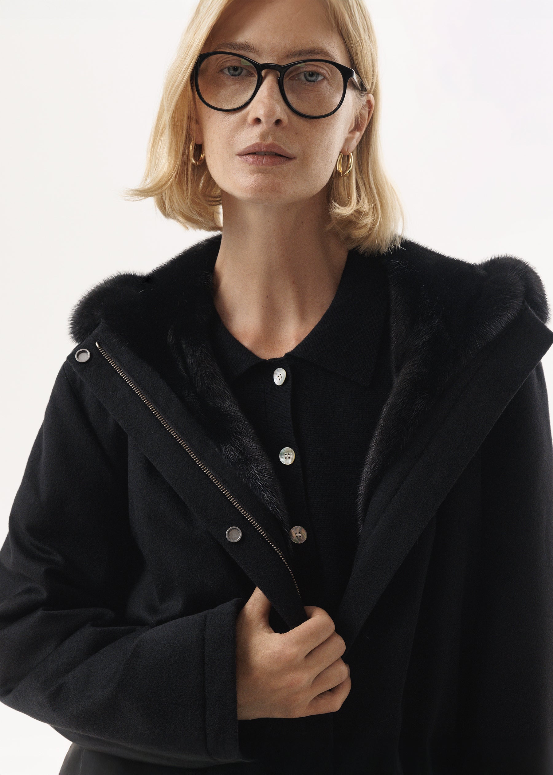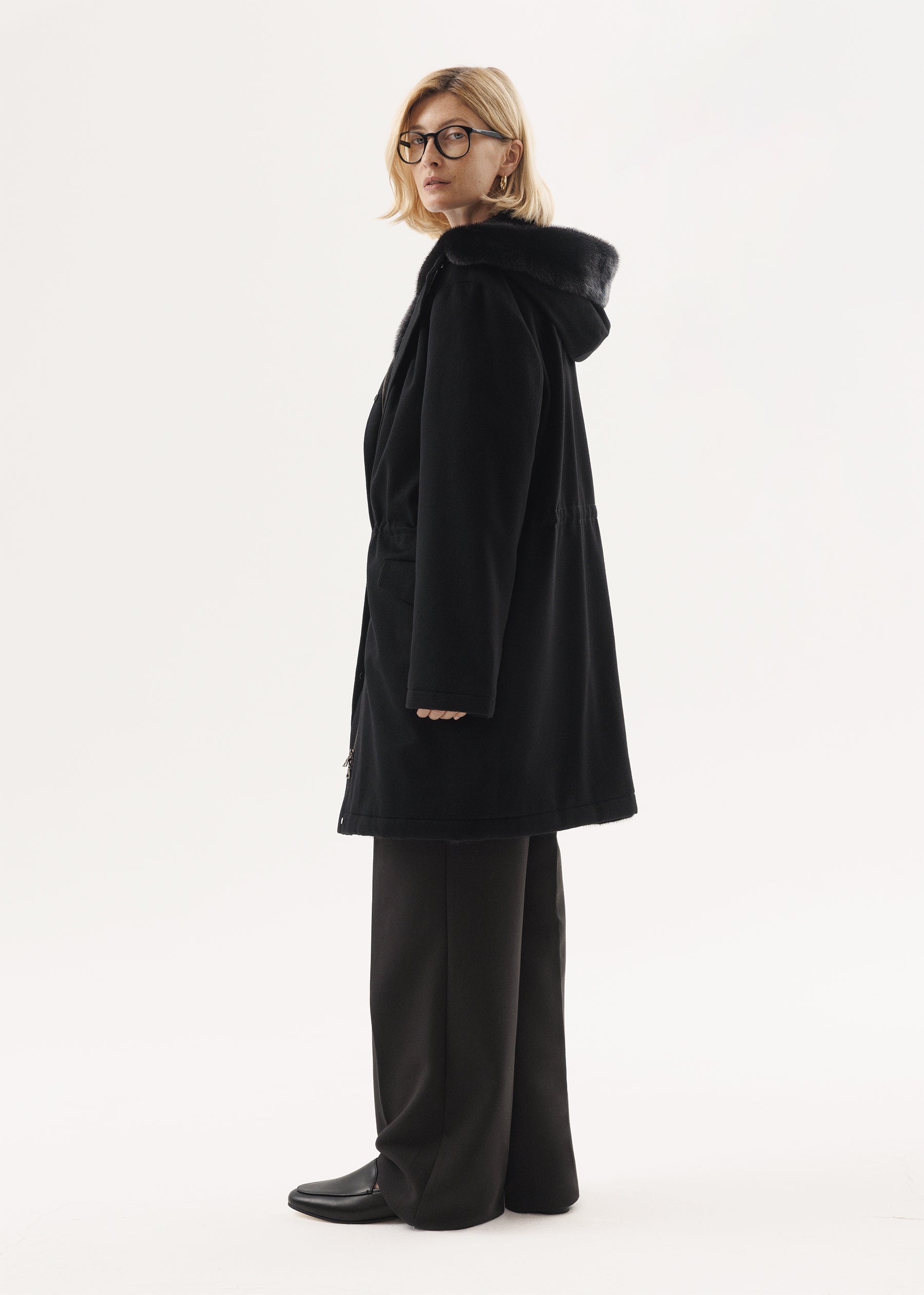 Das Futter der Parka besteht aus wertvollem skandinavischem kurzhaarigem Nerz in Schwarz.