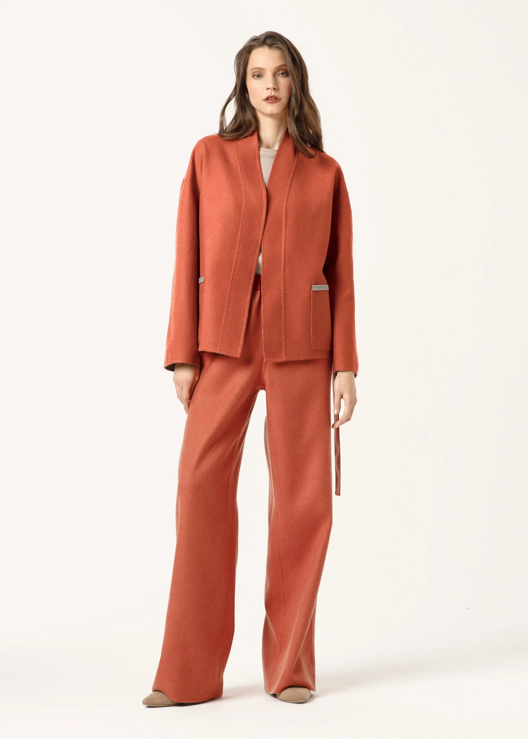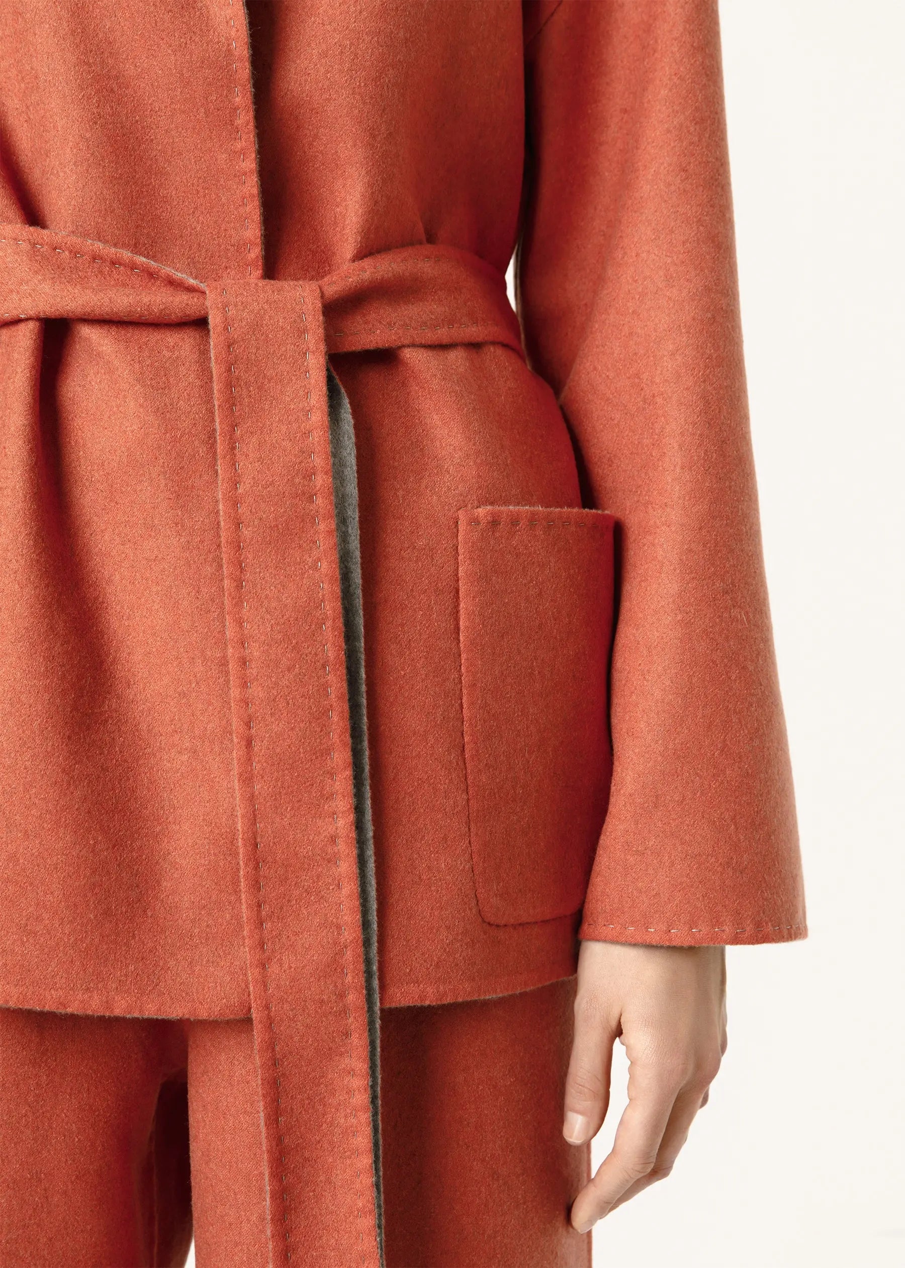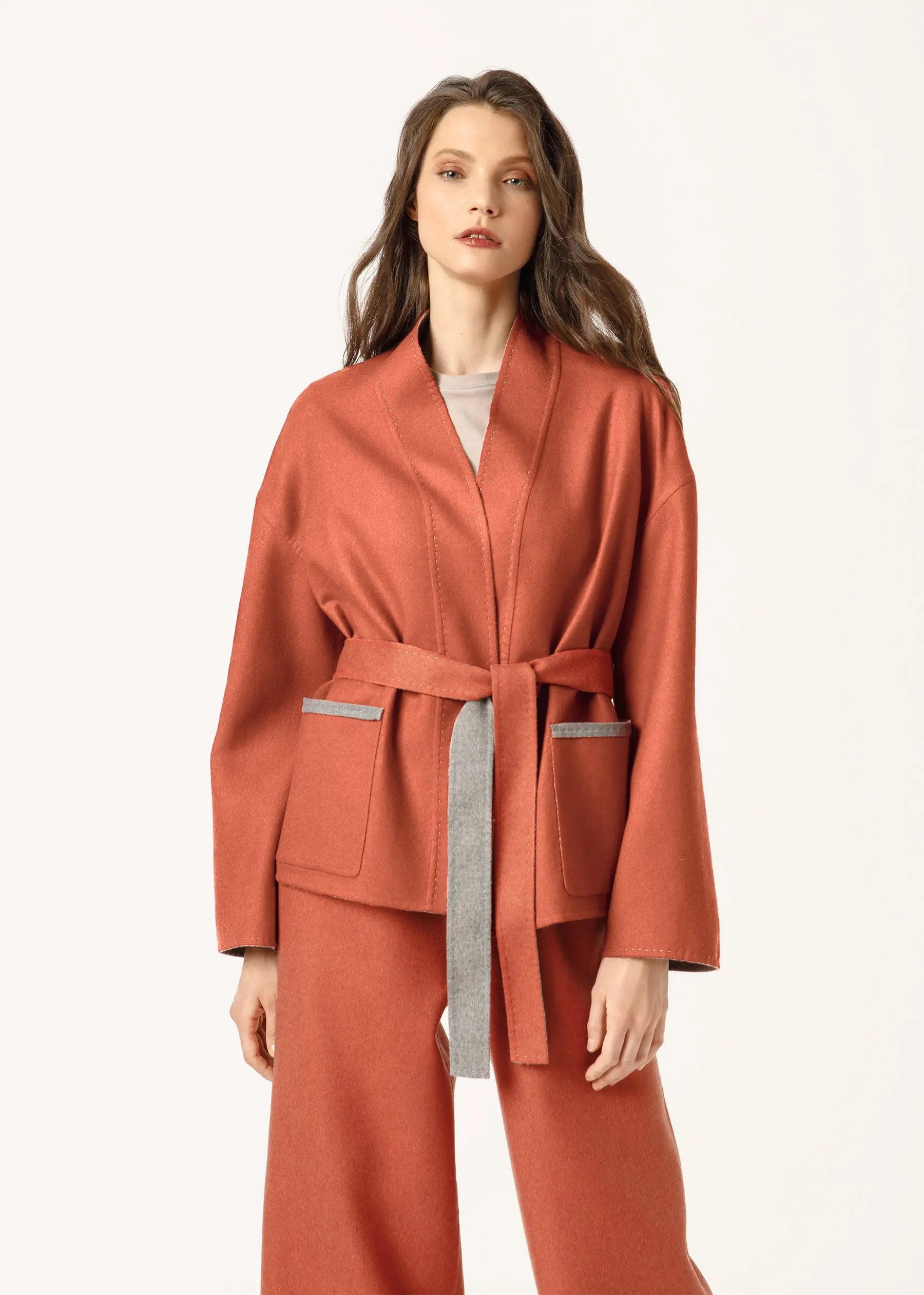 Blazer im Kimono-Stil mit breitem Gürtel aus weichem italienischem Kaschmir gefertigt, kann es beidseitig getragen werden.
