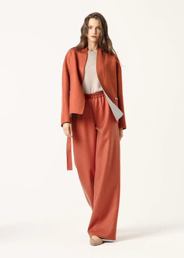 Die Jacke wird ideal durch eine Kaschmir-Wendehose in ähnlicher Farbgebung ergänzt.