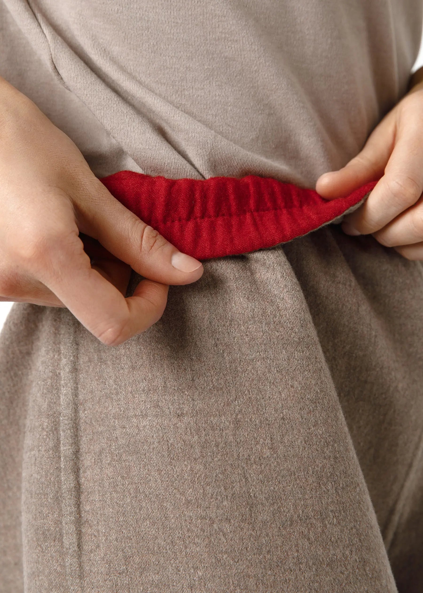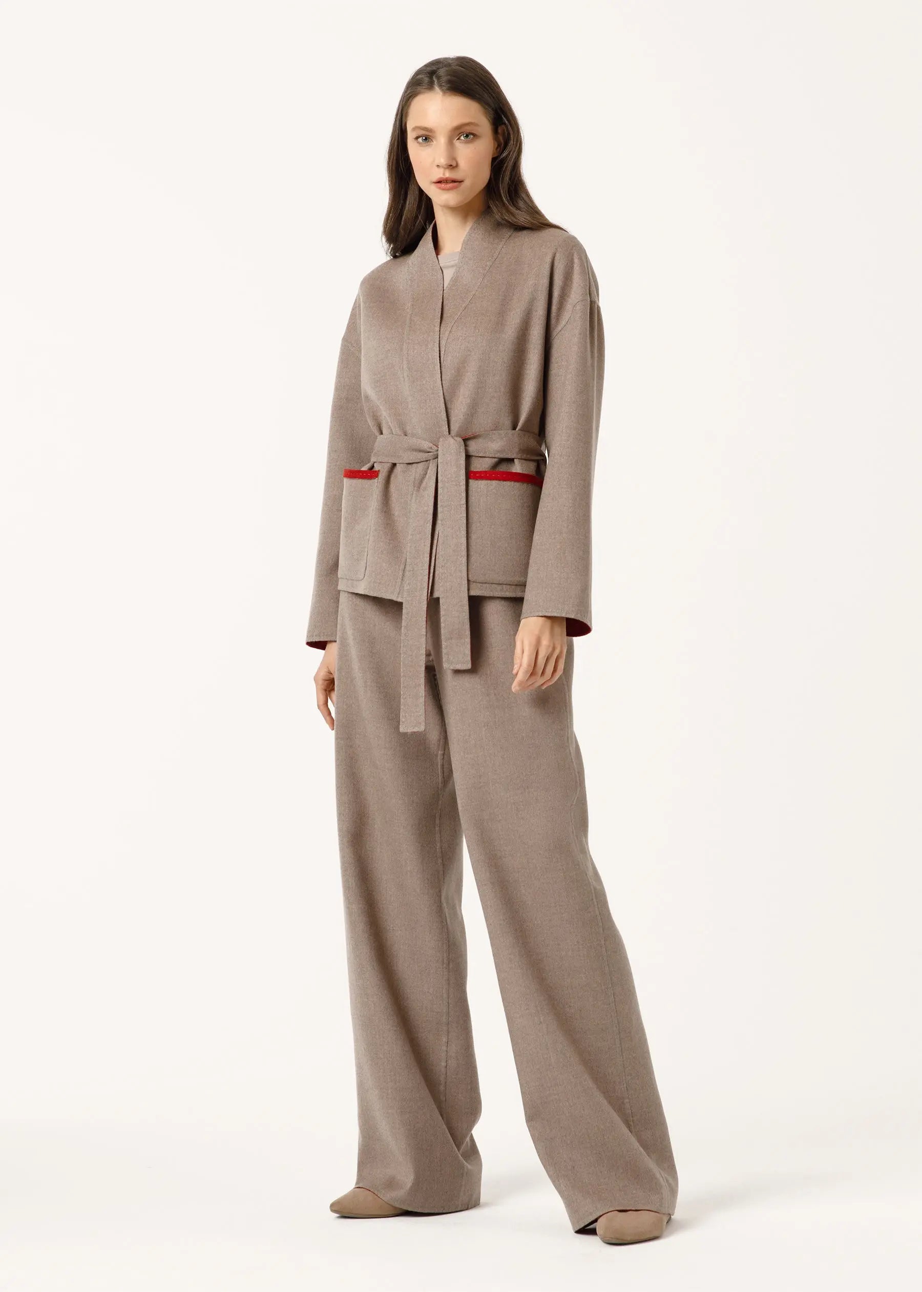 The trousers can be complemented with a reversible cashmere jacket in the colour Beige / Flame Scarlet.