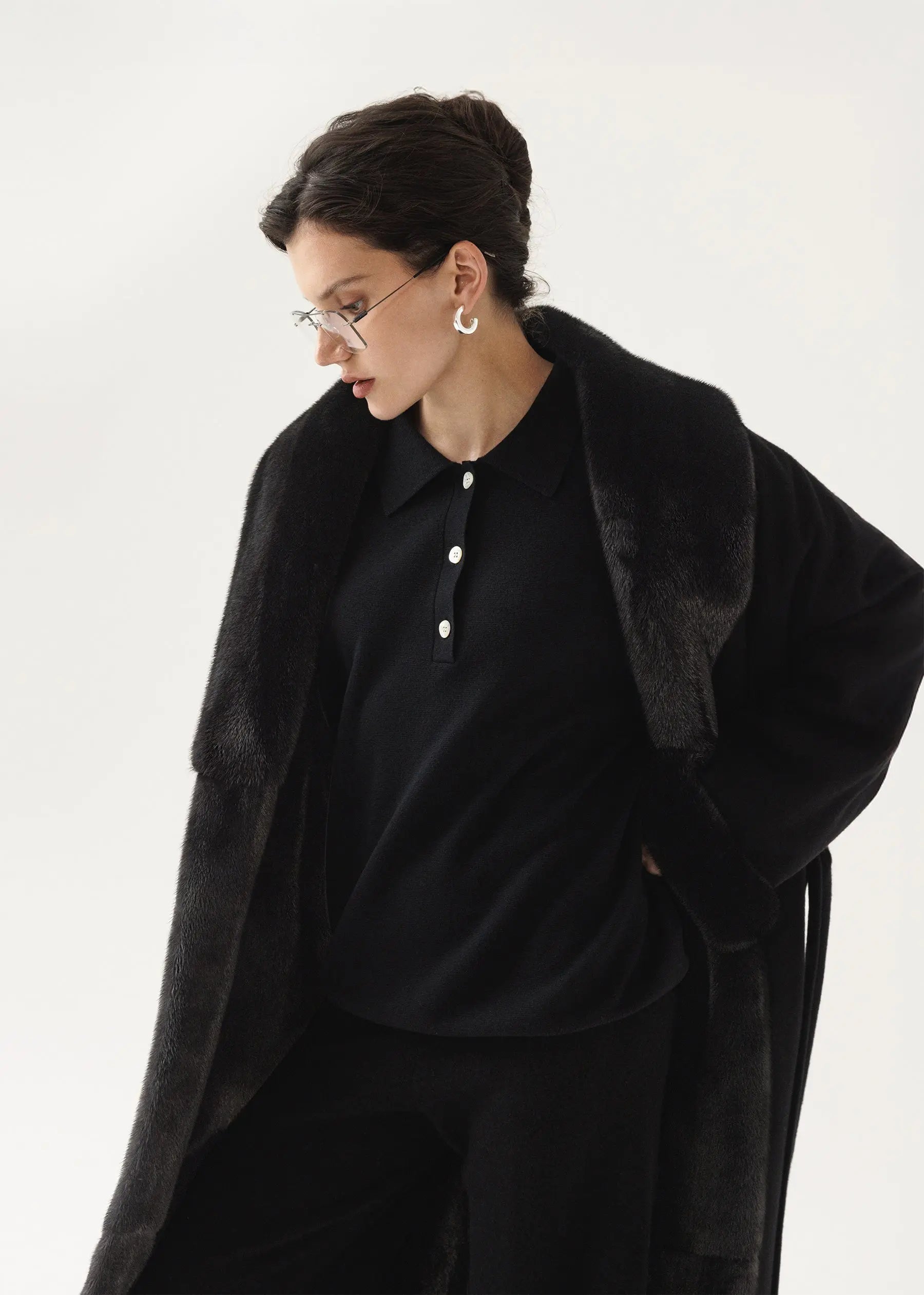 The lining of the cashmere coat is made of short-haired Scandinavian mink, the top is made of 100% double cashmere.