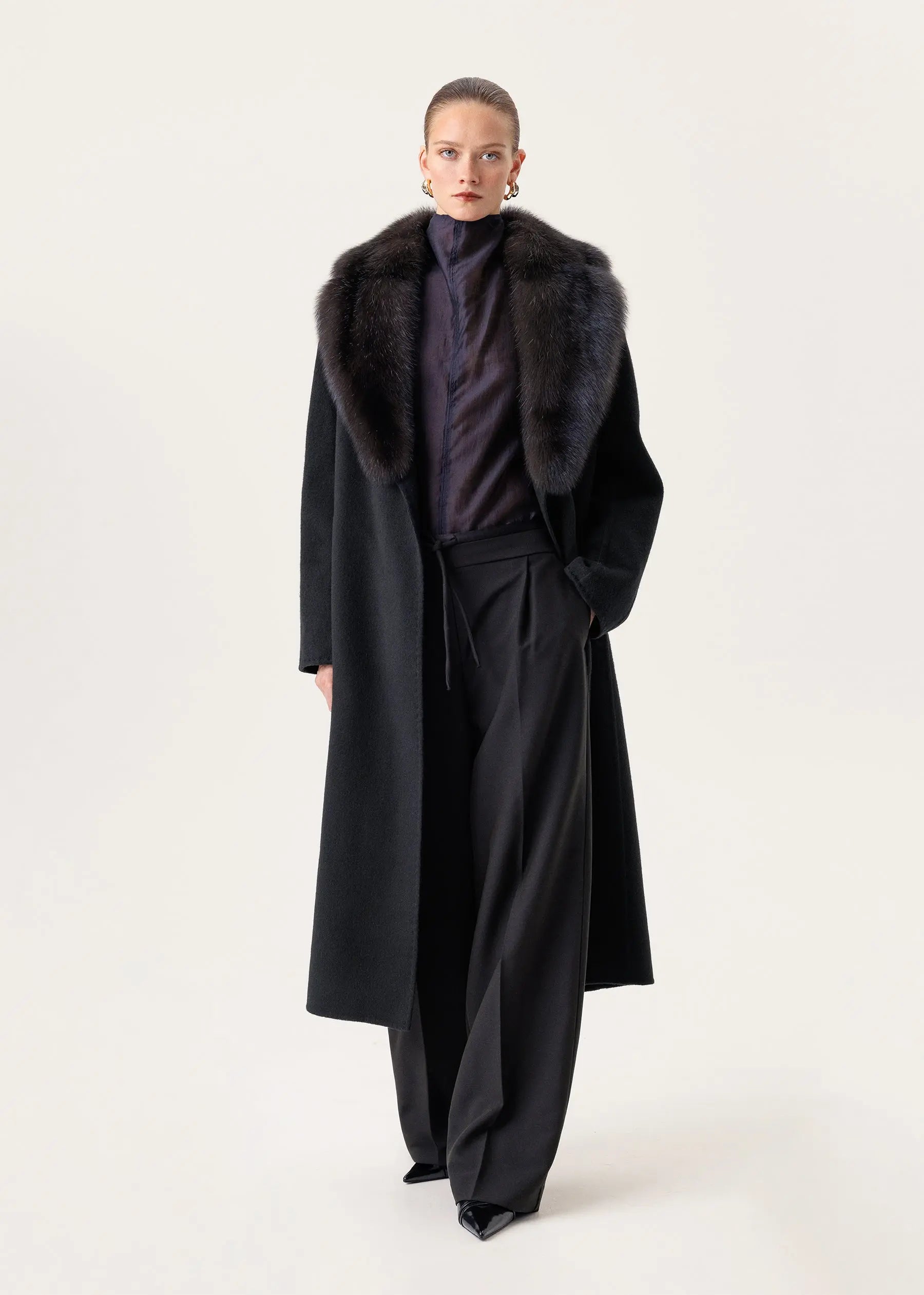 Open, hand-sewn coat made of double weave in pure cashmere.