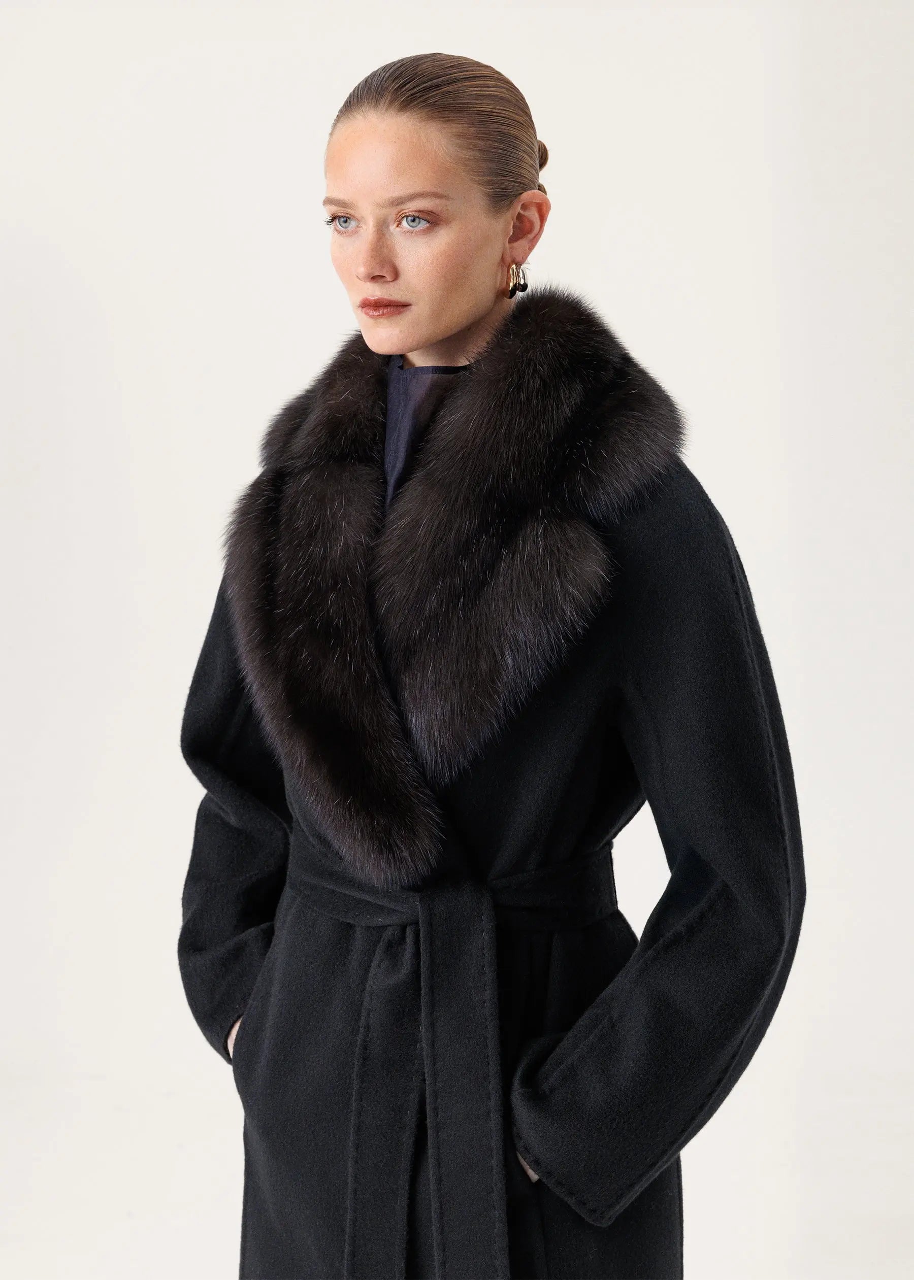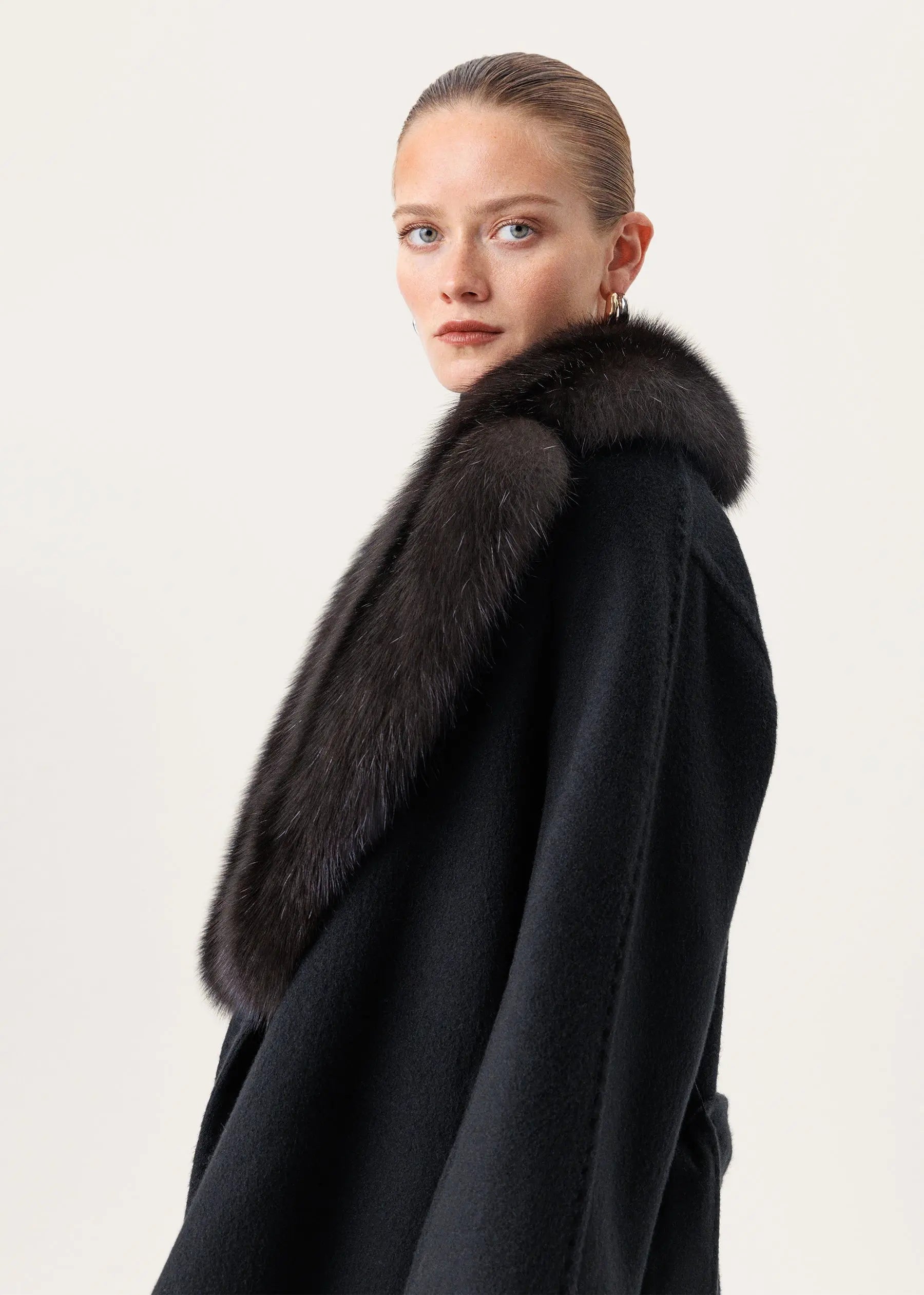 The color of the natural fur is ideally matched to the color of the cashmere.