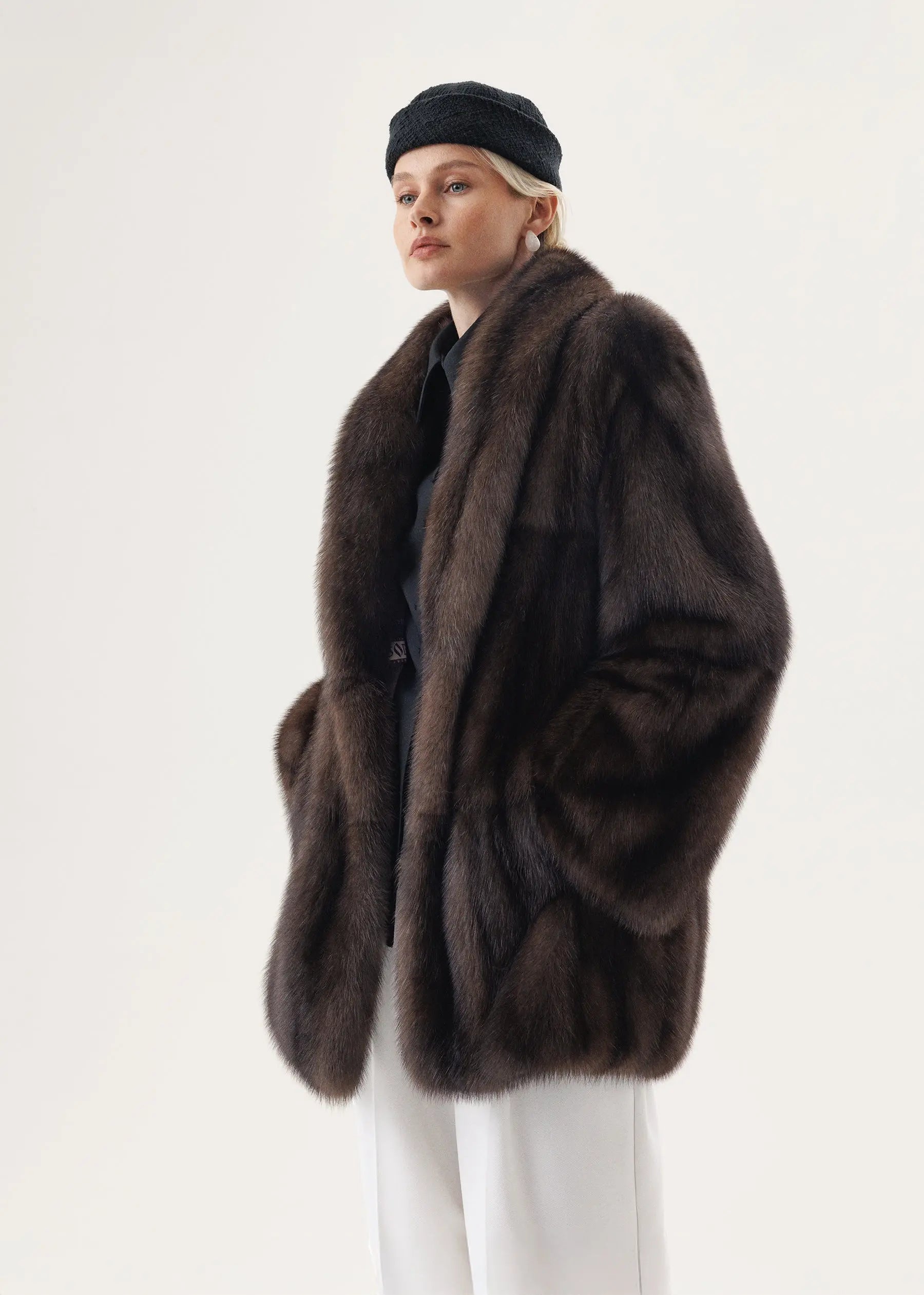 The classic silhouette of a short sable fur coat with cropped sleeves and hidden pockets combines functionality with high aesthetics.