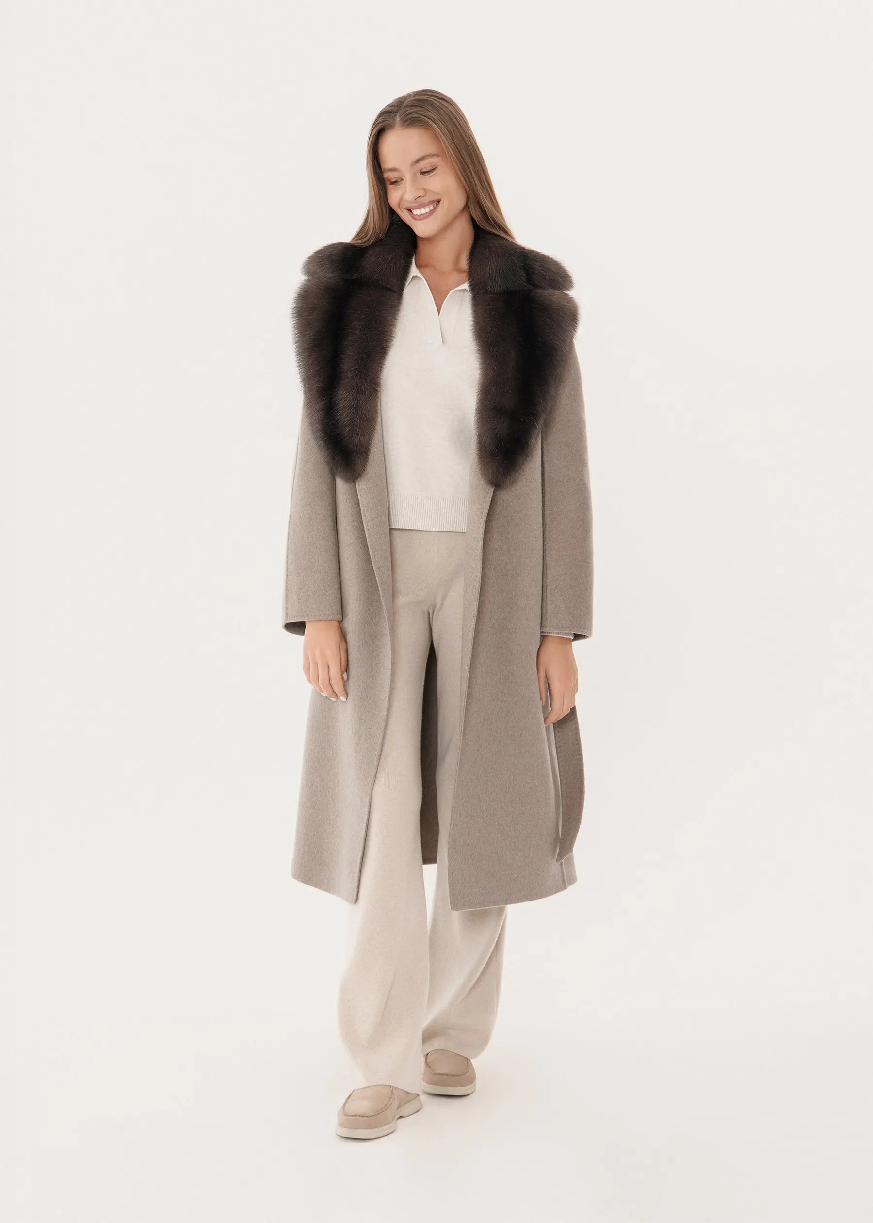 Le manteau en cachemire est confectionné en cachemire italien dans la rare couleur Tortora.