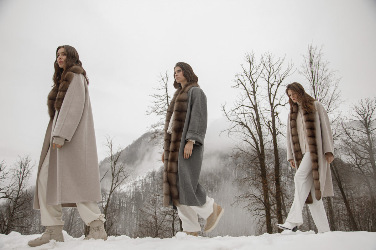 La collection Miracle of the Moment a été conçue pour profiter de chaque instant sans soucis, quelle que soit la météo. Des manteaux de fourrure confortables, des versions longues de gilets de fourrure et des manteaux-robes en cachemire ultramodernes sont parfaits pour des looks urbains élégants et des nœuds stylés pour des vacances douillettes dans les montagnes après-ski.