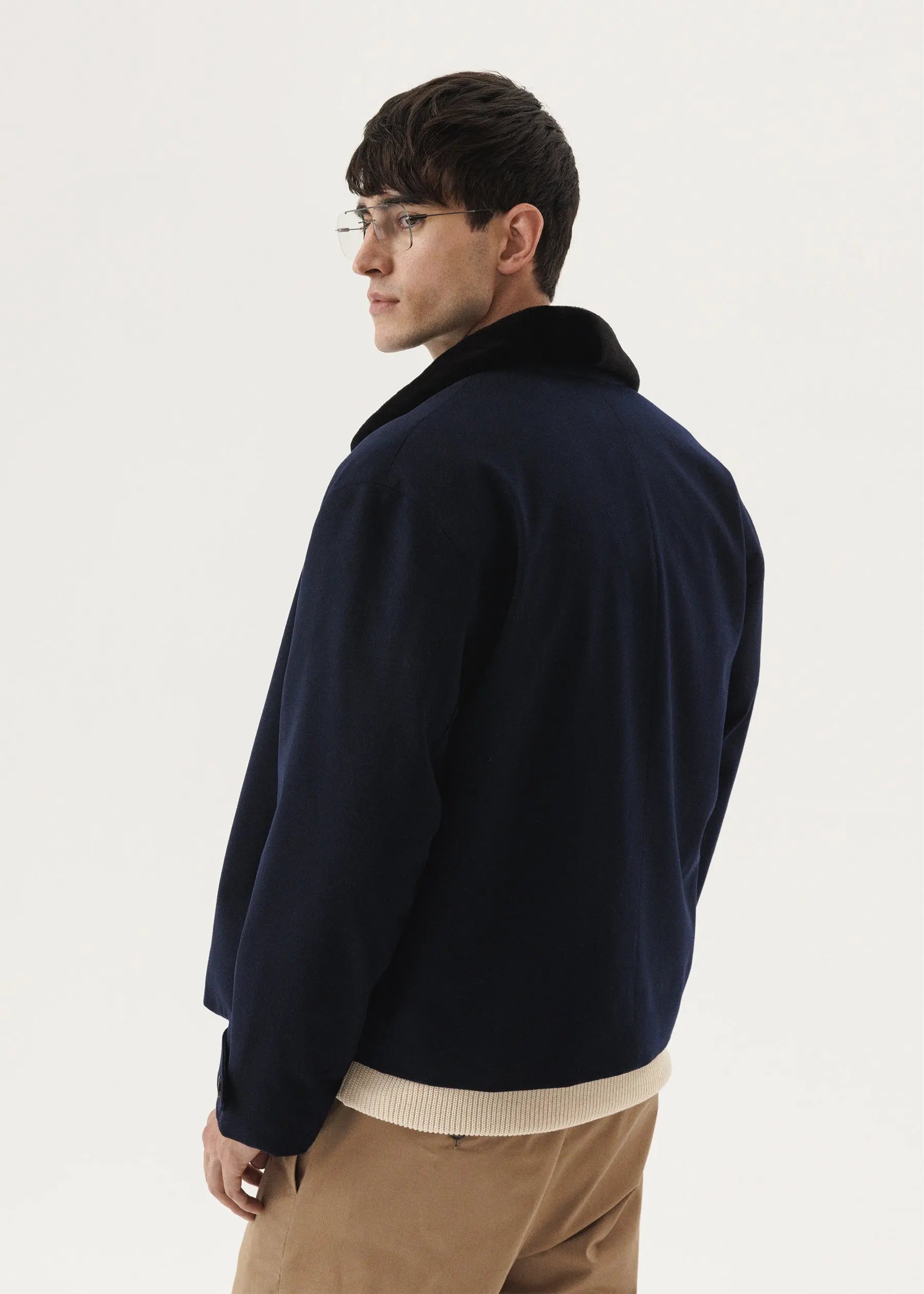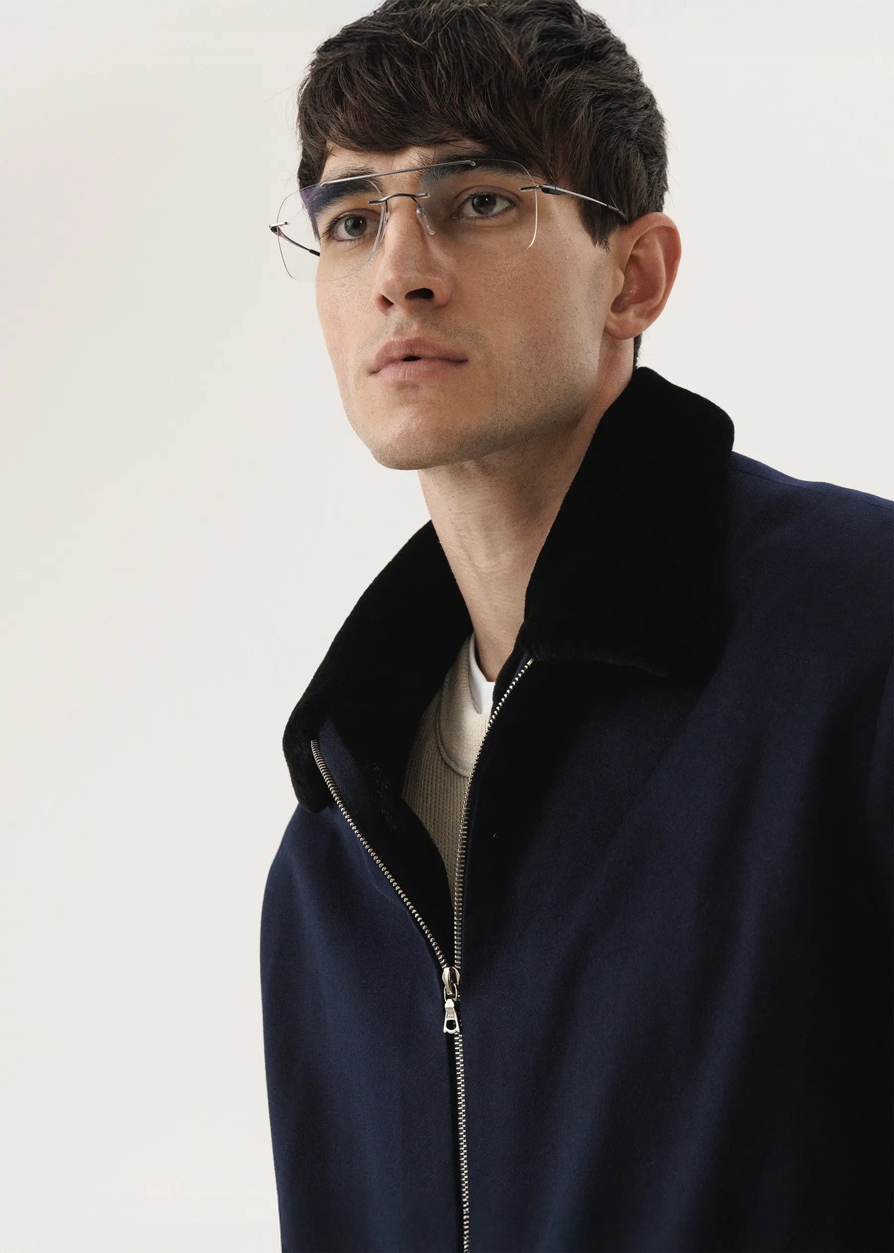 Eine gerade geschnittene Kaschmirjacke mit einer Unterlage aus geschorenem Nerz.